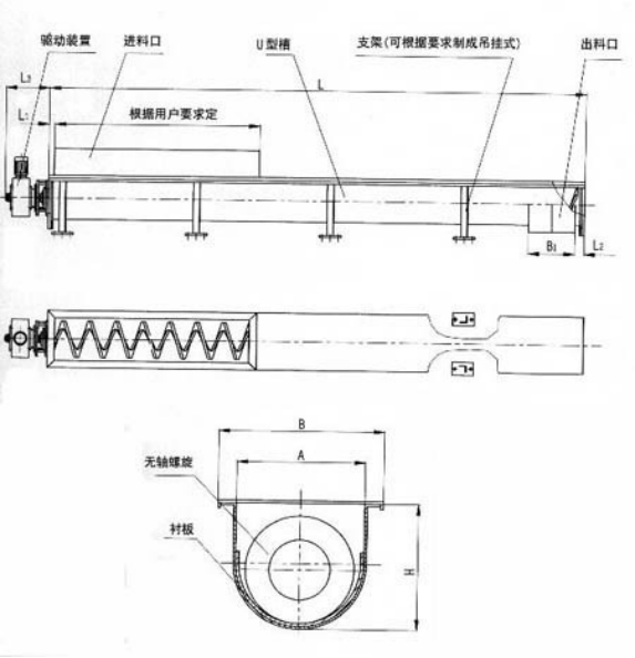 2. Compared to the shaft screw conveyor, the delivery volume is 1.5 times that of the shaft conveyor with the same diameter.